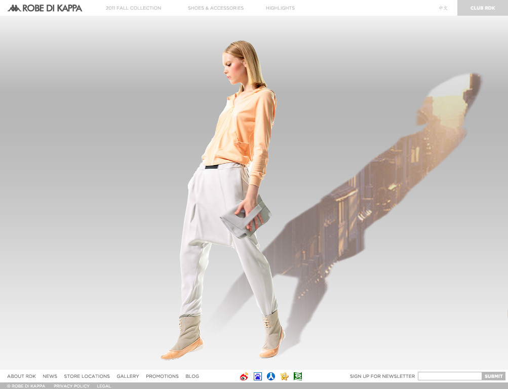 这季Robe Di Kappa 的概念是“城市行者”。 干净简单的前提下,用影子里面城市剪影来点题。